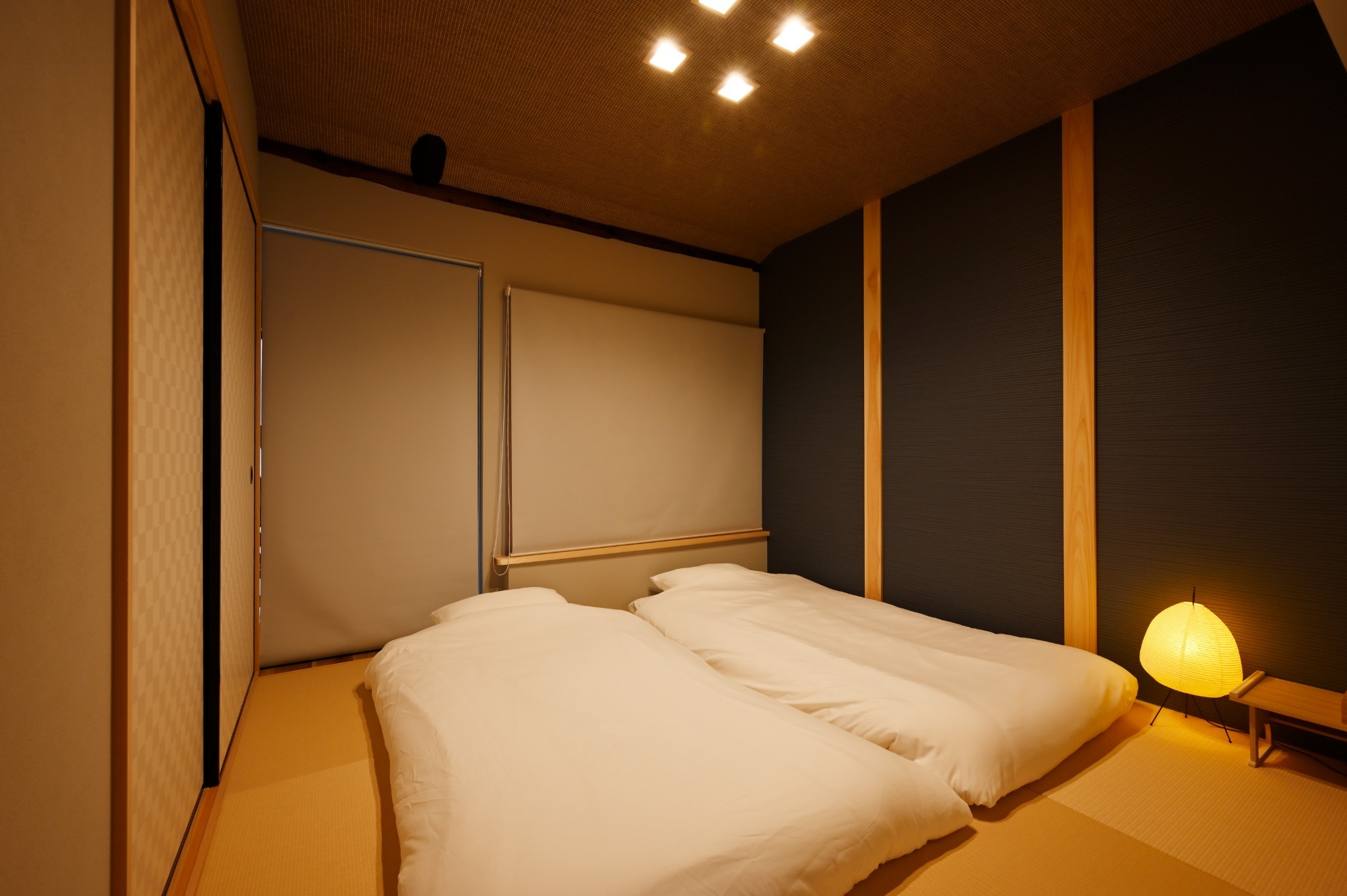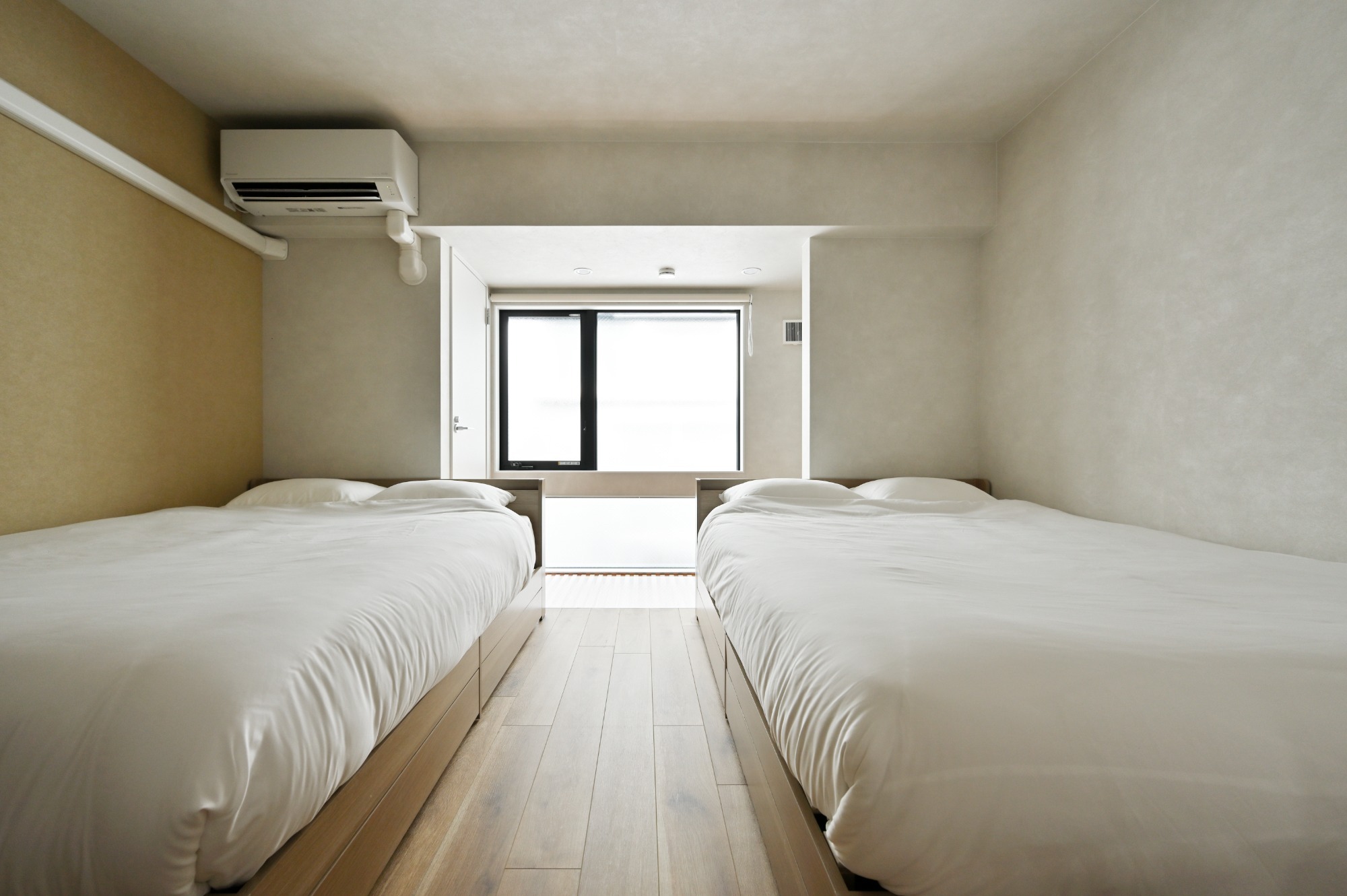 ベッドが2台設置された、落ち着きのある洋室です。