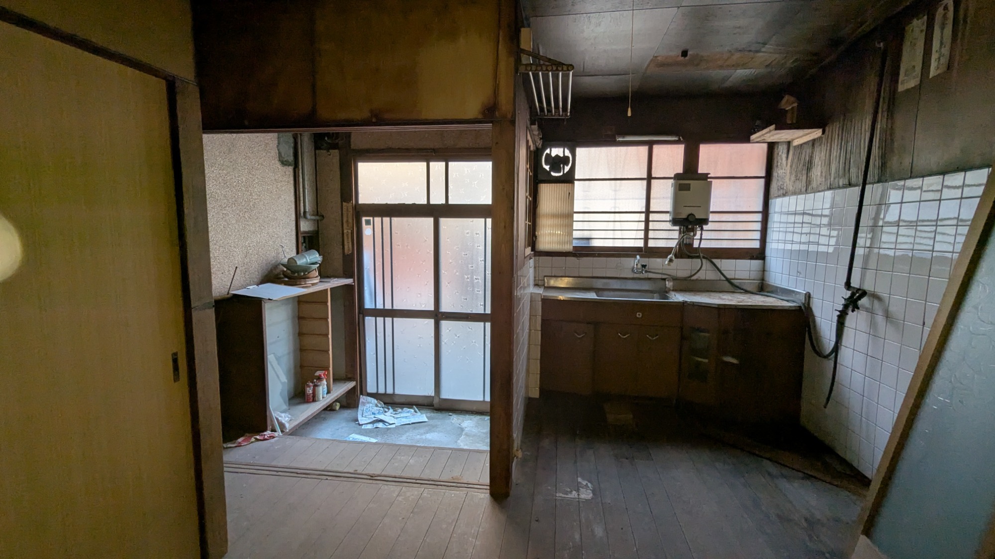 土間のある玄関で、天井は吹抜けになっています。