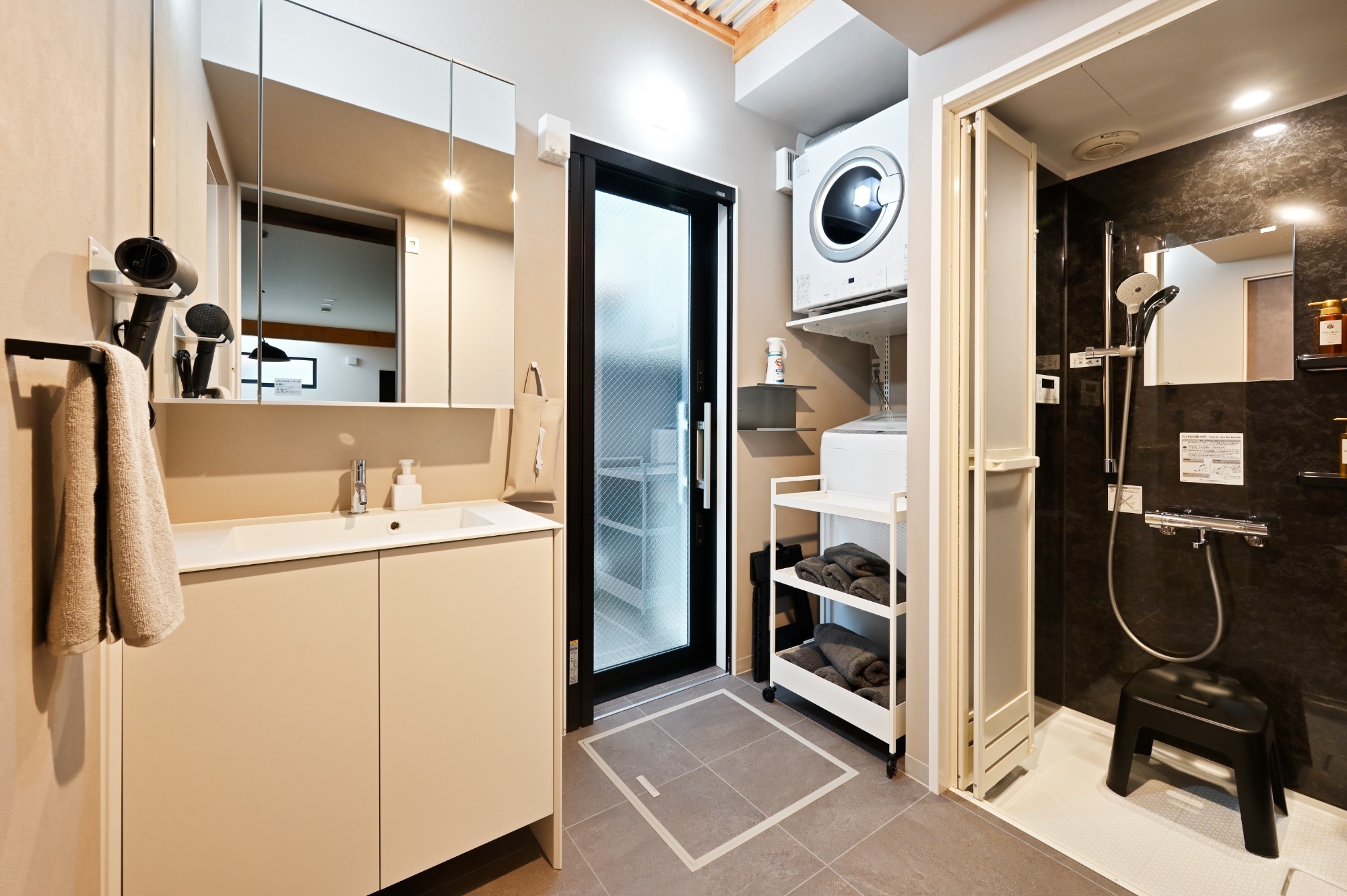 洗面、シャワー室、洗濯物は乾太くんでスピーディに乾かすことができます。